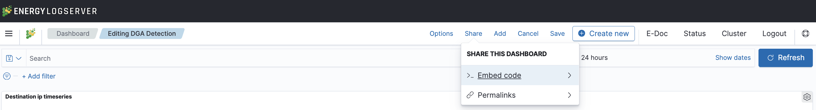 To save a dashboard, click on the “Save” button at the up of the query bar and give it a name.