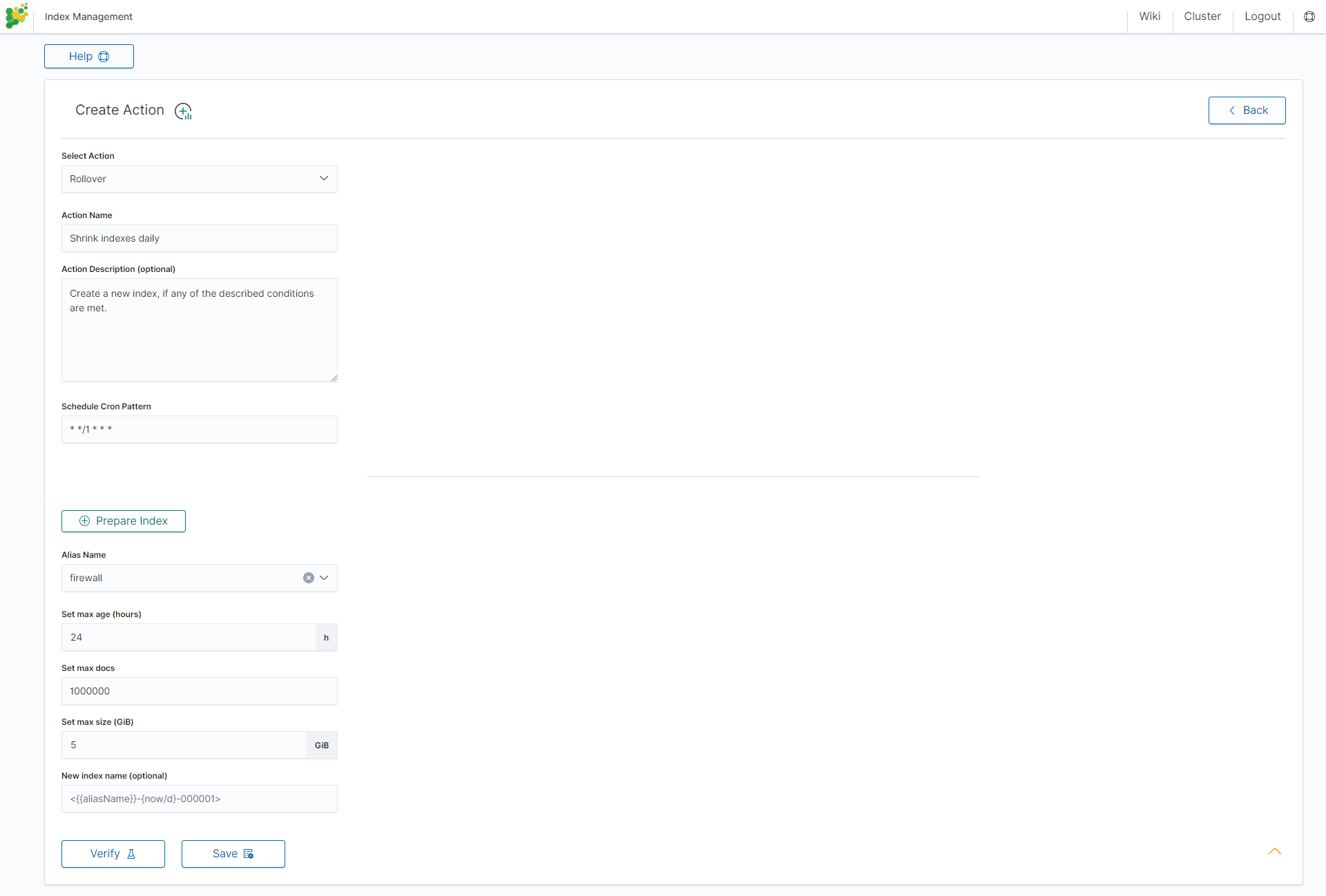 Action name: Logtrail-default-rollover