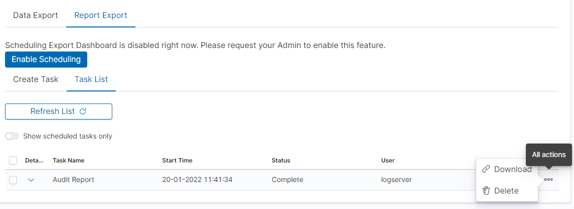 Scheduler Report (Schedule Export Dashboard)
