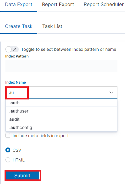 we want to export. It can be an index pattern. After selecting it,