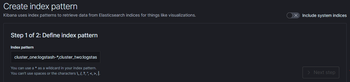 Configure index pattern in GUI to discover data from multiple clusters: