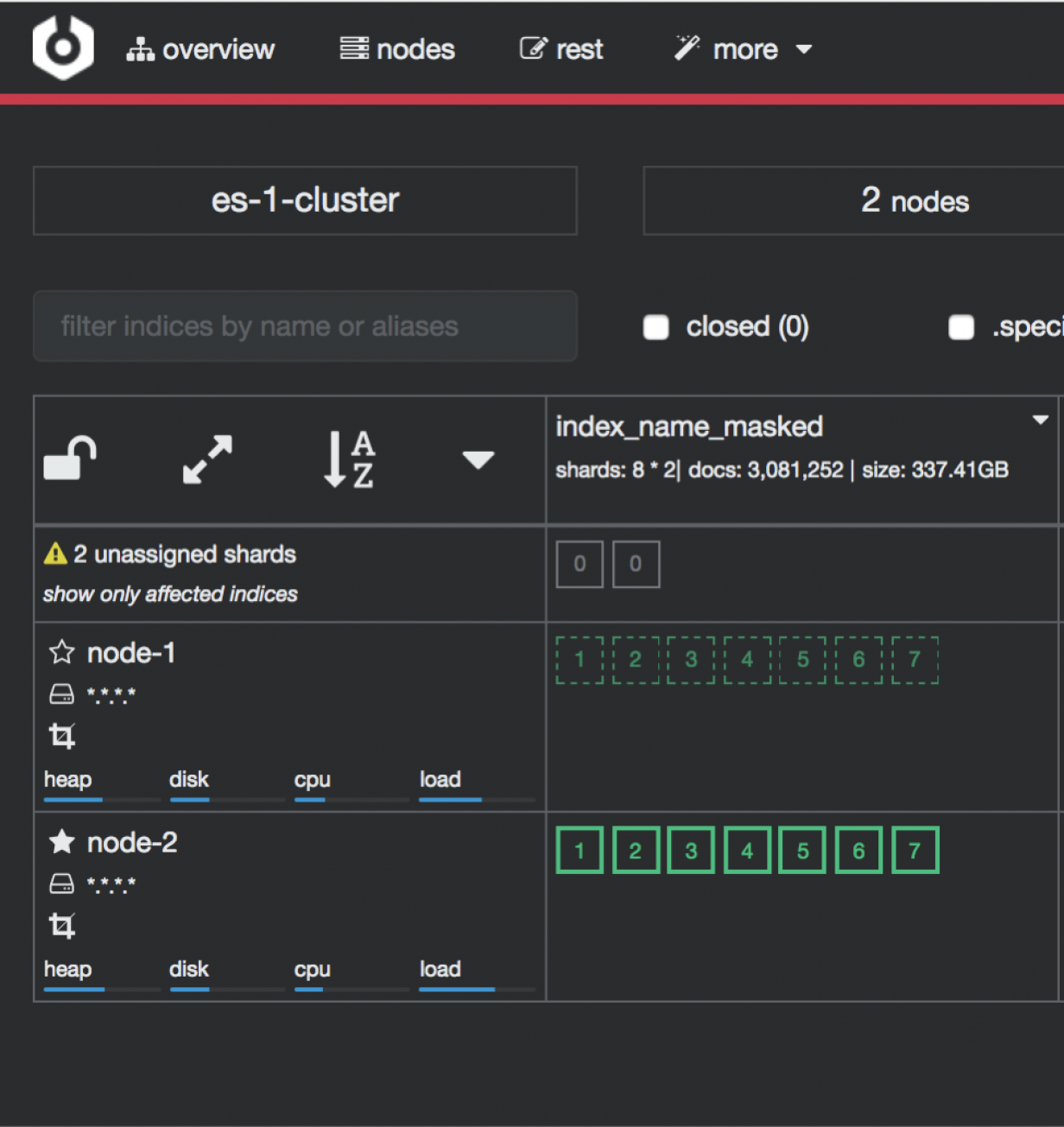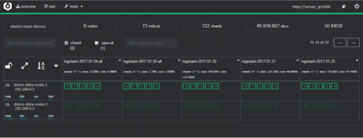 monitoring and management of indexing nodes, indexes and shards: