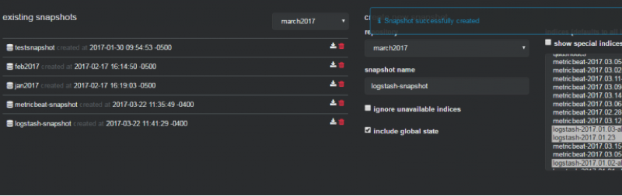 monitoring and management of index snapshoots :