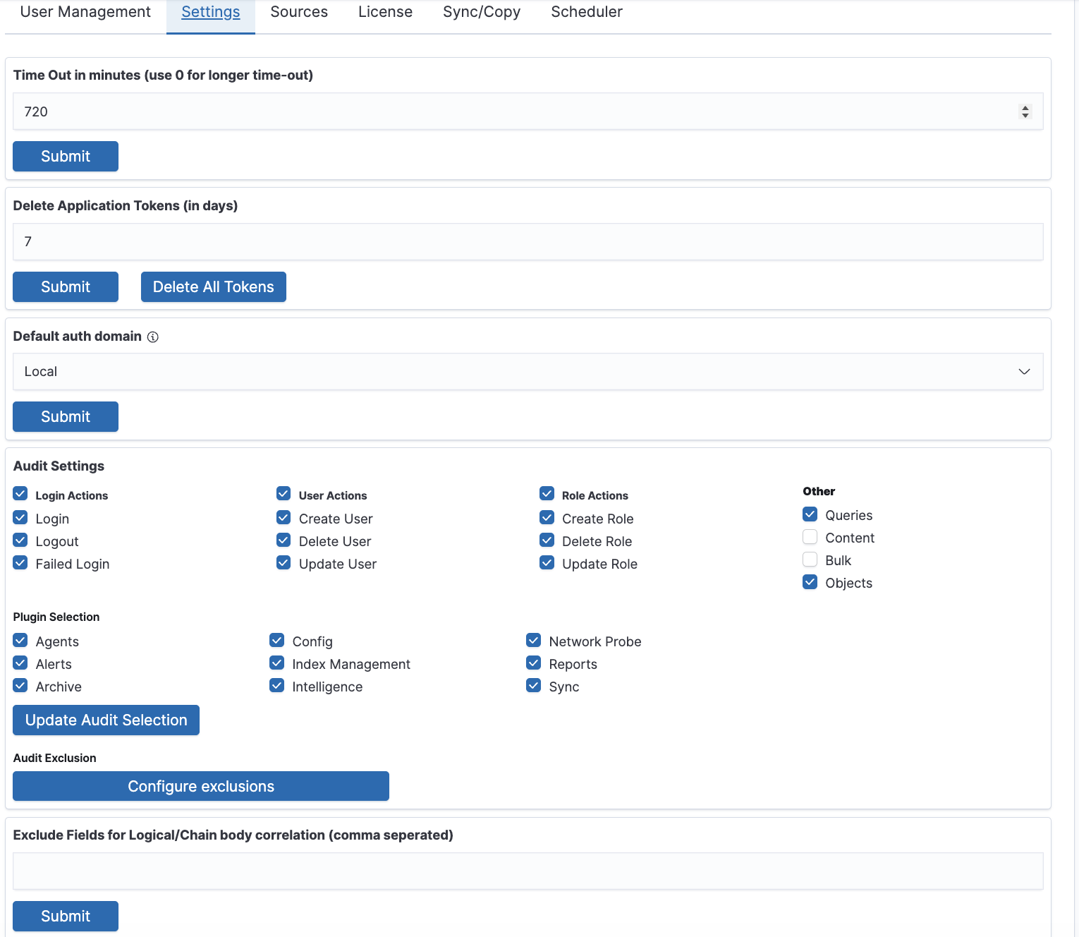 Delete Application Tokens (in days) - in this field, we specify after what time the data from the audit should be deleted